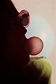 La luz que sale desde abajo tiene un efecto sorprendente y fantasmal. Se coloca la luz sobre el piso, frente al modelo. Esto se denomina iluminación de escenario. Al modelo se lo ve misterioso y demoníaco. De todas maneras, la distribución de luces y sombras debe ser planificada con mucho cuidado, para evitar la creación de un ambiente demasiado siniestro. |