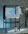 Comencemos por colocar primero una única fuente de luz. Si se la coloca a un ángulo de 45º del eje de enfoque, nos estamos refiriendo a la luz lateral, que es la más apta para modelar formas y estructuras contra el fondo. Las sombras tienen un efecto más poderoso, que se puede controlar fácilmente utilizando pantallas reflectoras. El sujeto tiene entonces una apariencia tridimensional y se encuentra separado del fondo. Una impresión homogénea se logra empleando colores relativamente neutrales y una buena diferenciación en la tonalidad del color. |